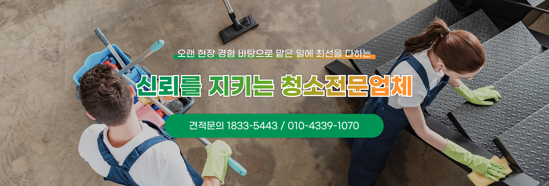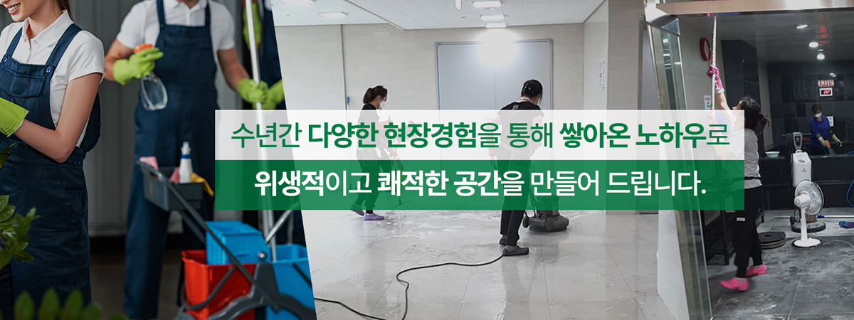 찌든 때와 오염된 공간들을 대청소로 사업장을 깨끗하게 유지해 업무의 효율을 높이는 서비스